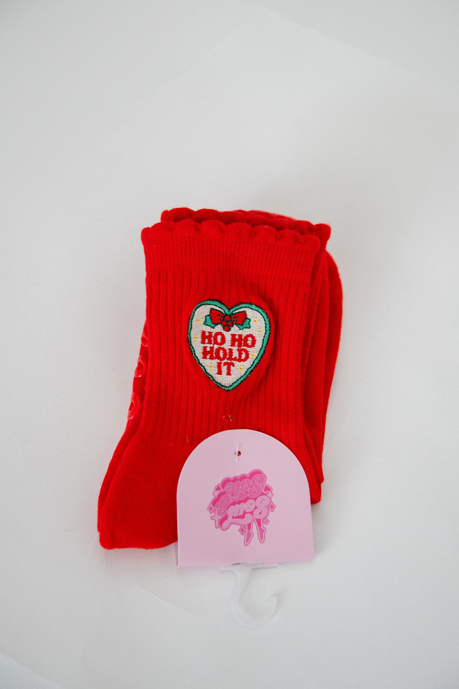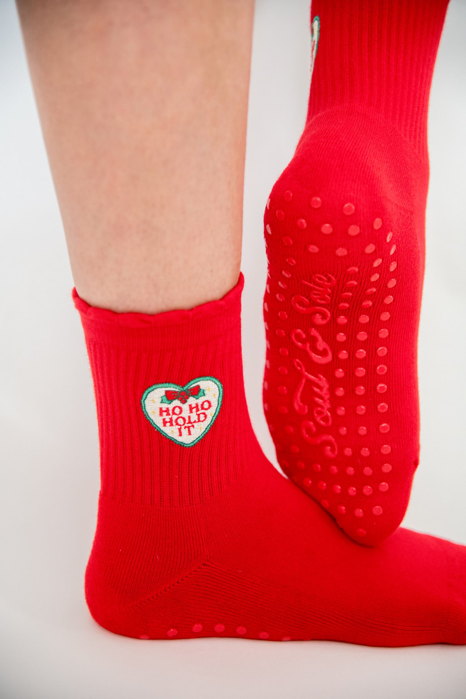 Ho-ho-hold your pose in style. Our Ho Ho Hold It Grip Socks are your holiday go-to for comfort and cheer.