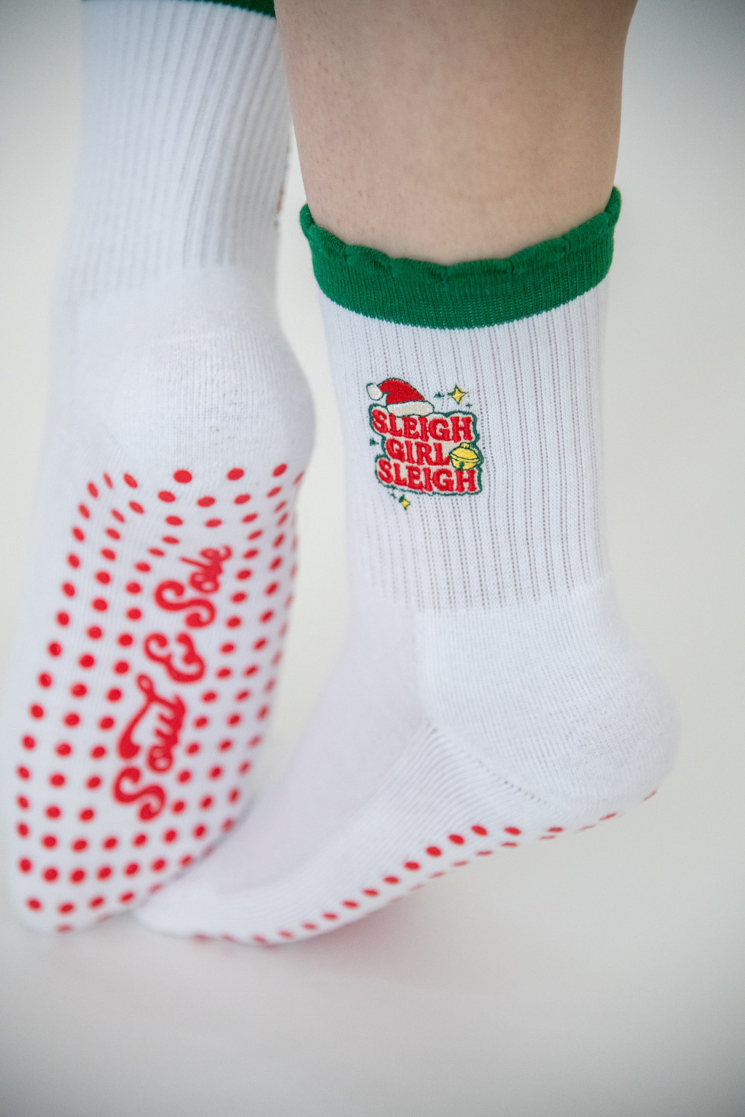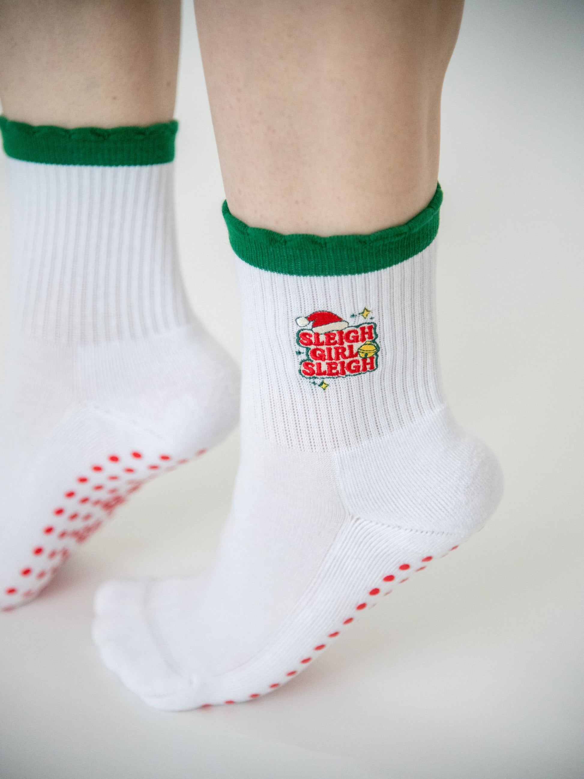 Festive, but make it fierce. Our Sleigh Girl Sleigh Grip Socks bring holiday cheer to every move — from Pilates to present-wrapping.