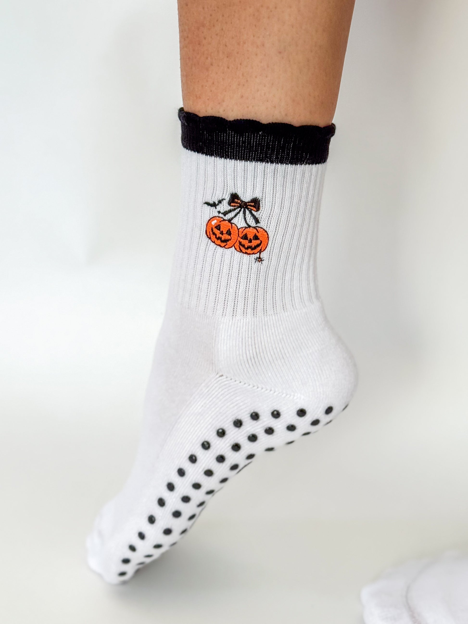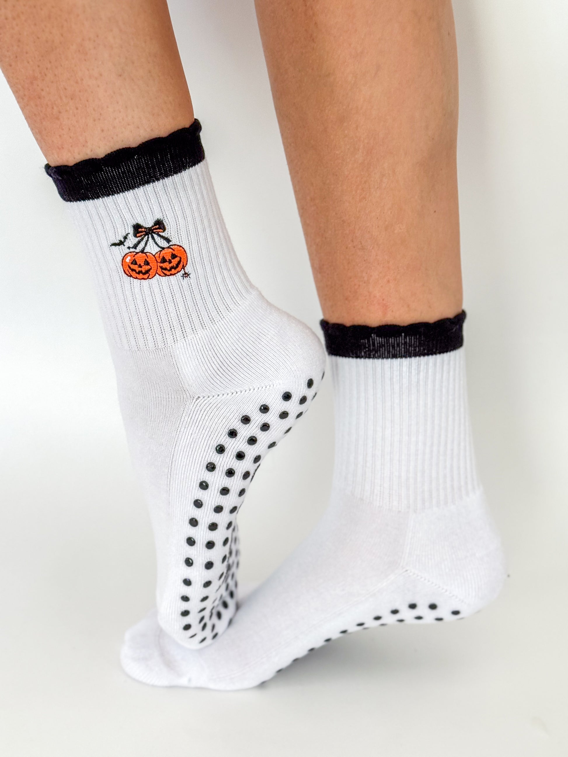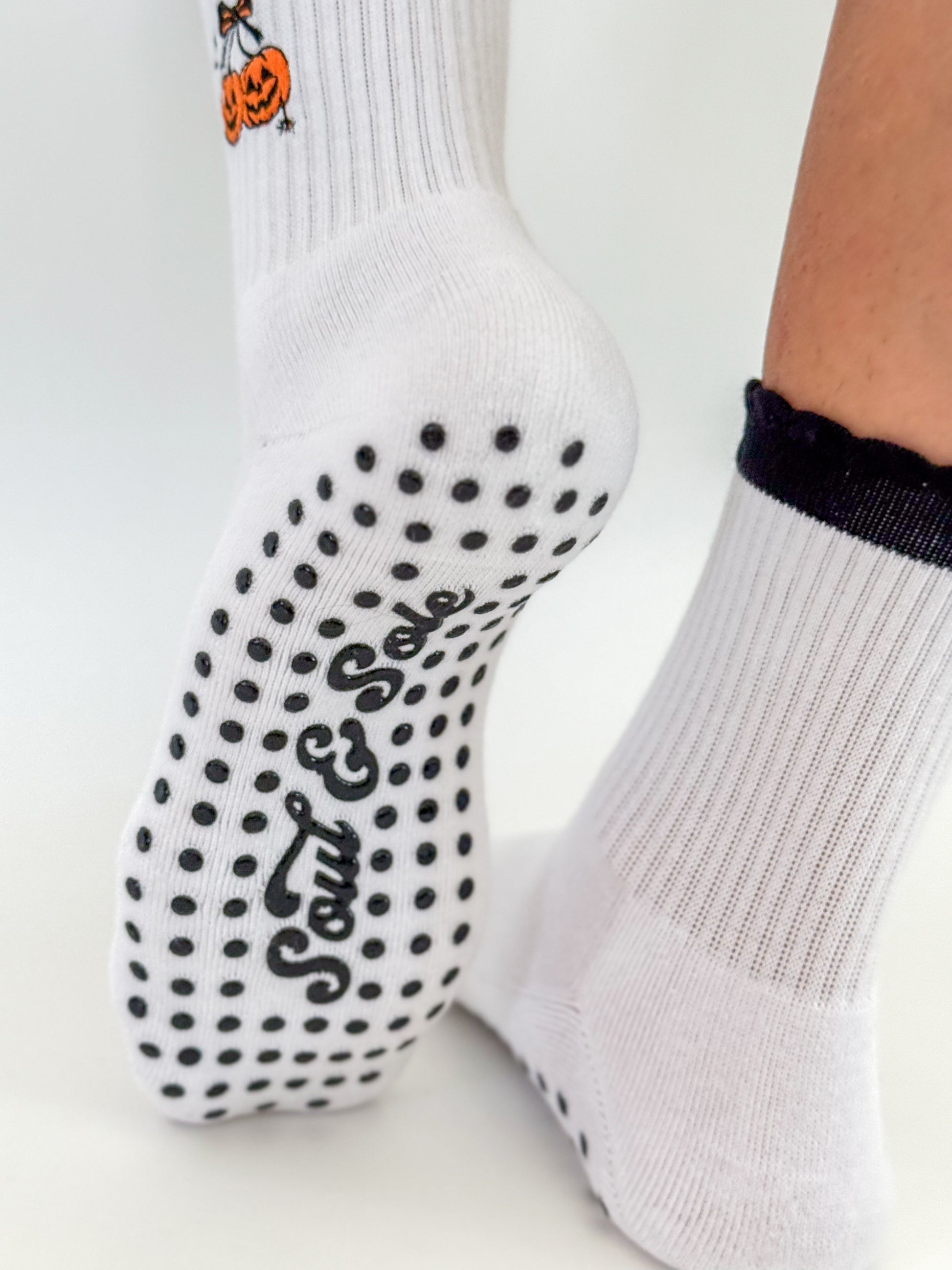 Spooky, but make it cute. Our Pumpkin Pair Grip Socks add a festive touch to your flow β with a little bow on top.